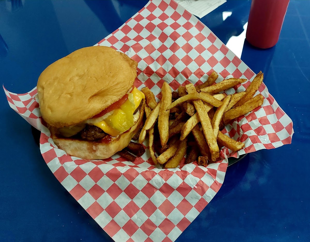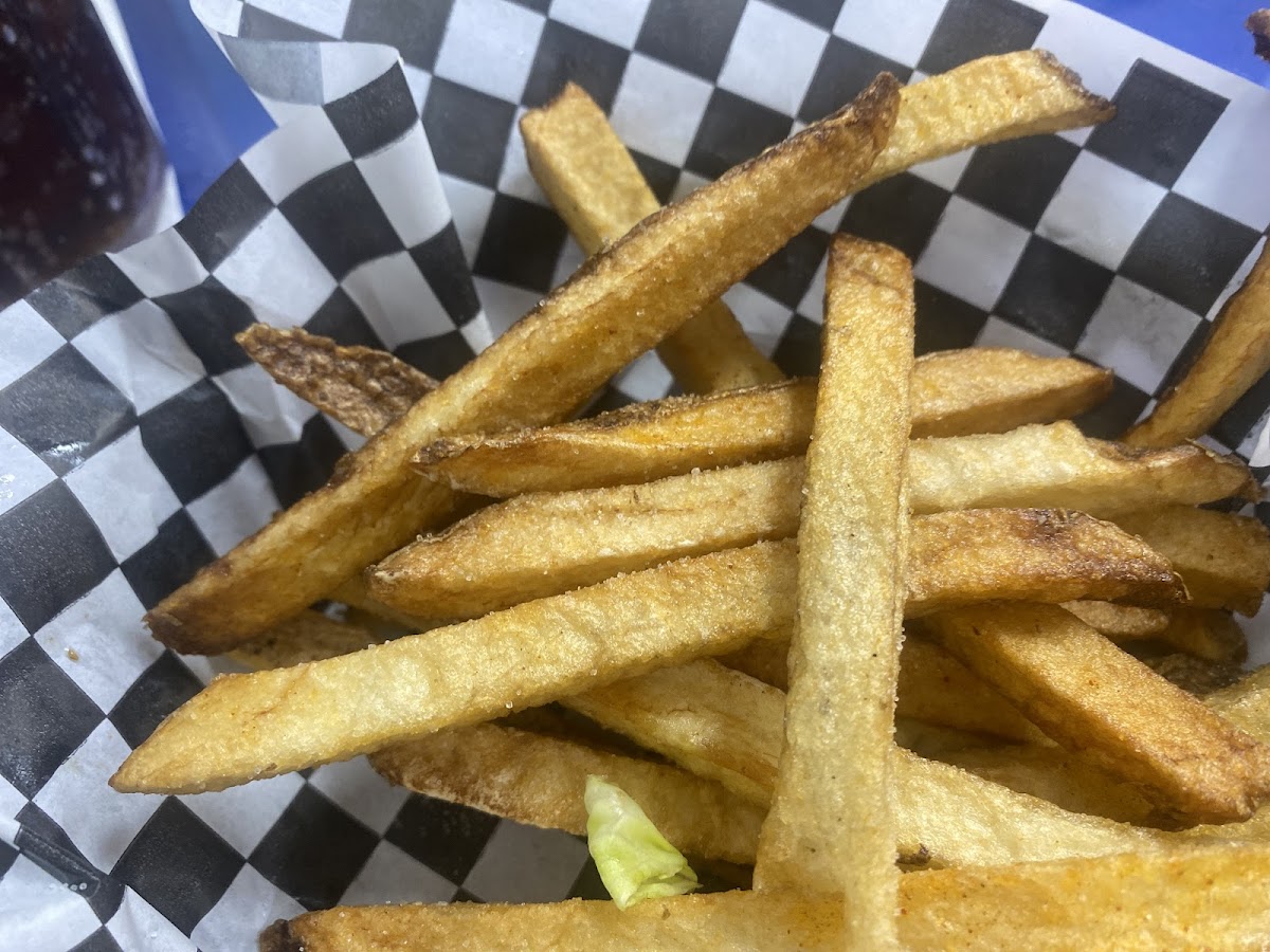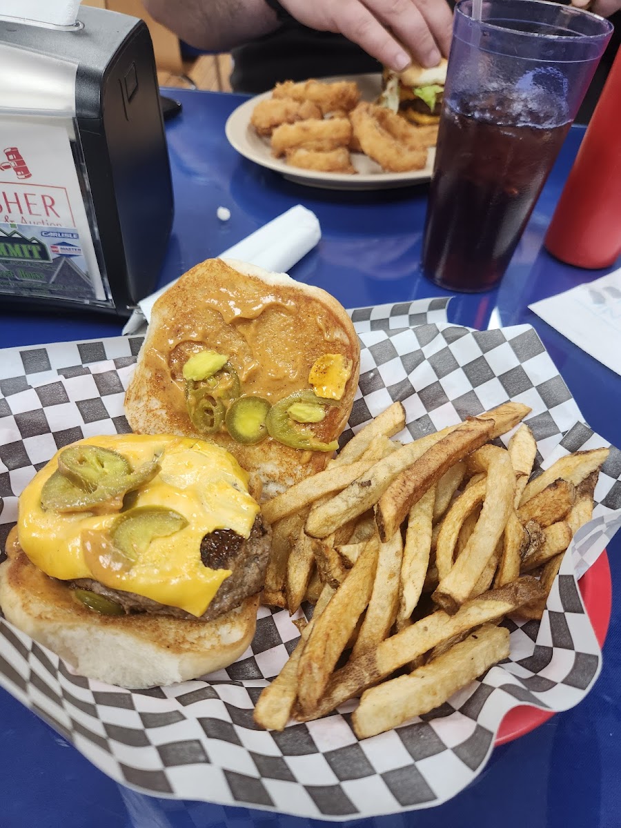 One of the best Bacon cheese onion rings BBQ hamburgers and the hand cuts French fries Great. Excellent customer service.This dinner have great cozy atmosphere